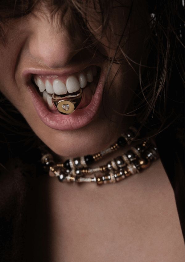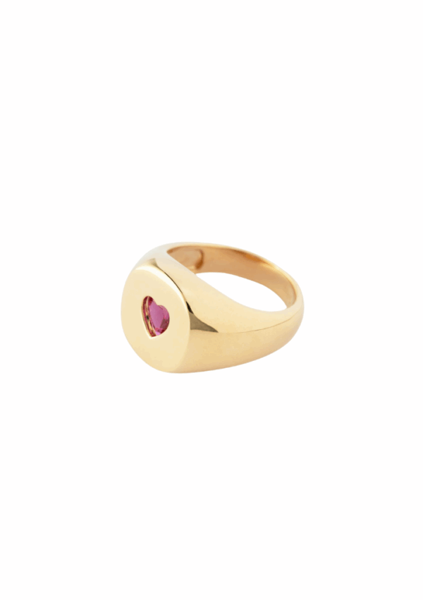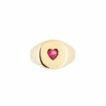 La bague cœur a l’allure d’un bijou vintage revisité. Pensée pour un porté en chevalière à l’auriculaire, elle affirme une élégance pleine d’attitude.