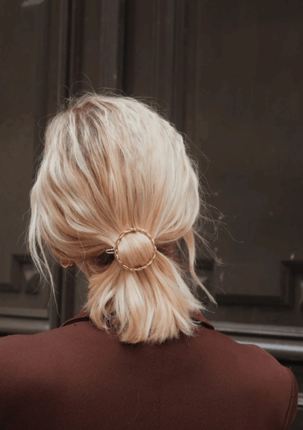 Barrette ronde dorée et torsadée.