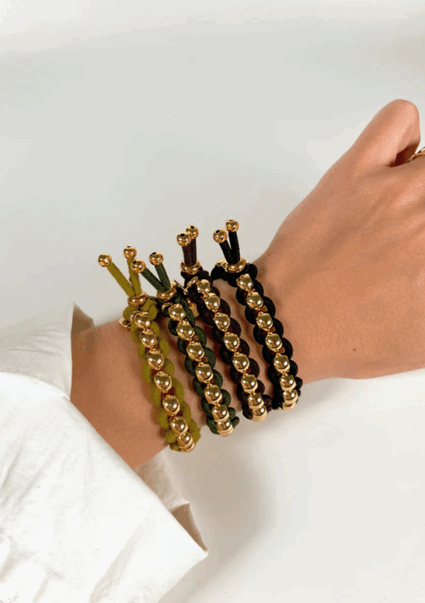 Chouchou bijou monté sur un élastique de haute qualité coloré, ultra résistant, orné de perles en acier inoxydable pour un éclat durable. Élégant et polyvalent, il maintient vos coiffures avec style et se transforme en bracelet tendance autour du poignet.