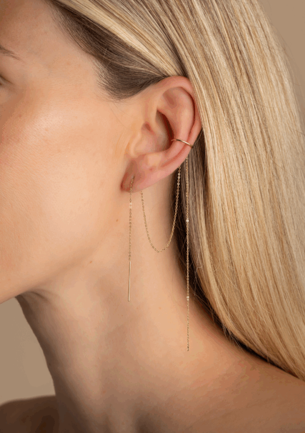 Avec ses 2 chaînes aériennes et son anneau, ce bijou incarne une féminité libre, sensuelle et assumée. Honoré habille l’oreille, il mêle finesse et caractère pour dessiner une silhouette forte, où chaque mouvement révèle votre personnalité.