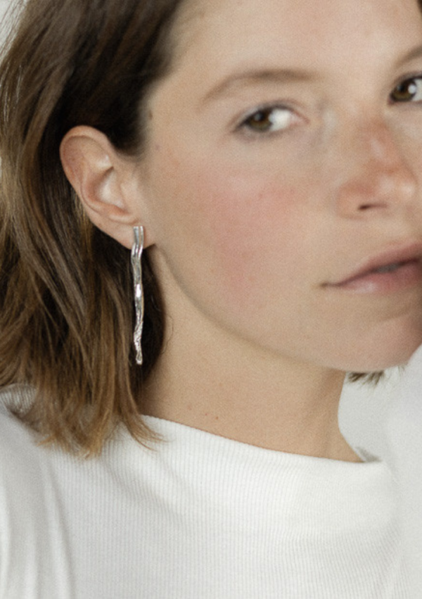 Composées de deux batônnets légèrement irréguliers, Les boucles d’oreilles Ariane dessinent une silhouette élancée, entre le fil précieux et la branche délicatement sculptée. Longues et pendantes, elles marient structure et fluidité.