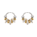 Les créoles Bound de chez SIGAL jouent les contrastes : une base argentée sublimée par un jeu de perles dorées, argentées et d’anneaux croisés pour un effet sculptural et lumineux.