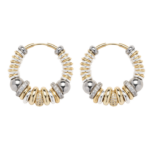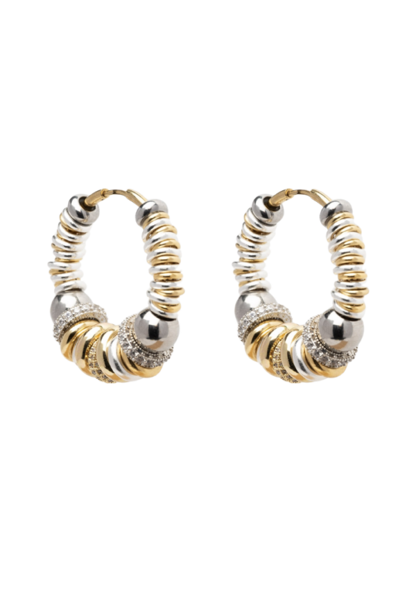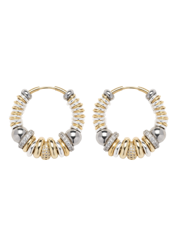 Ces grandes créoles SIGAL mêlent une succession d’anneaux dorés et argentés, de perles métalliques rondes et d’anneaux en oxydes de zirconium. Leur format généreux combiné au jeu des textures apporte du caractère, pour finir un look, tout en restant élégantes et faciles à porter au quotidien.