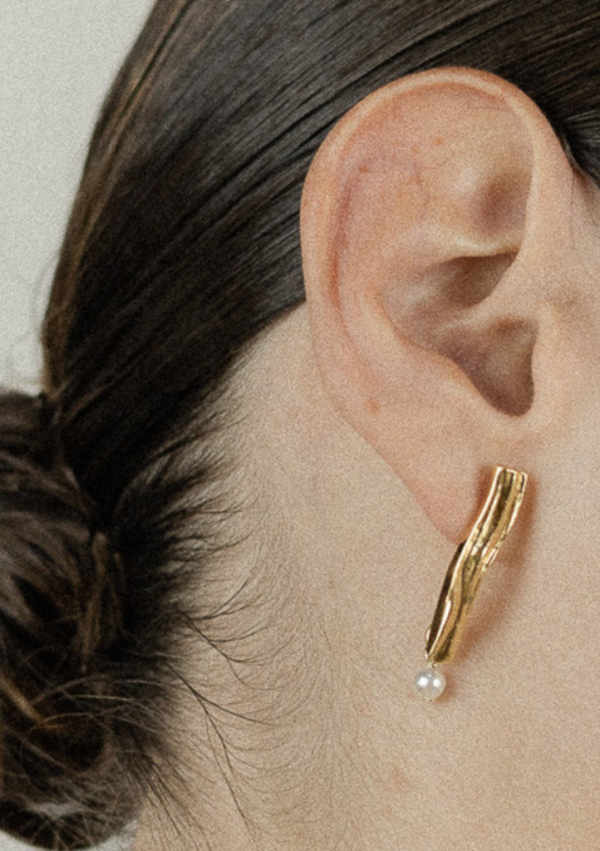 Les boucles d’oreilles Rizo ont une présence discrète mais affirmée.