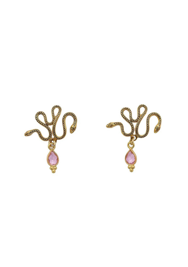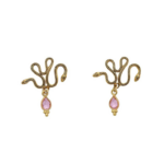 Boucles d’oreilles serpent signées LA2L, au dessin finement travaillé. Le motif serpent se prolonge par une goutte en verre coloré, apportant une touche lumineuse et délicate.