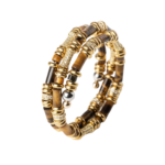 Monté sur une base rigide ajustable, ce bracelet SIGAL mêlant perles naturelles, éléments dorés et oxydes de zirconium habille le poignet avec caractère tout en restant facile à porter au quotidien.