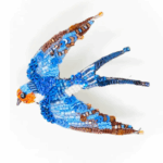 Broche brodée de perles et de sequins, représentant une hirondelle en vol.