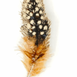 Broche brodée de perles et de sequins, représentant une plume de pintade.