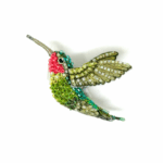 Broche brodée de perles et de sequins, représentant un Colibri à gorge rubis:  une espèce de colibri (oiseau-mouche) très commune en Amérique du Nord, notamment reconnaissable par la gorge rouge éclatante du mâle.