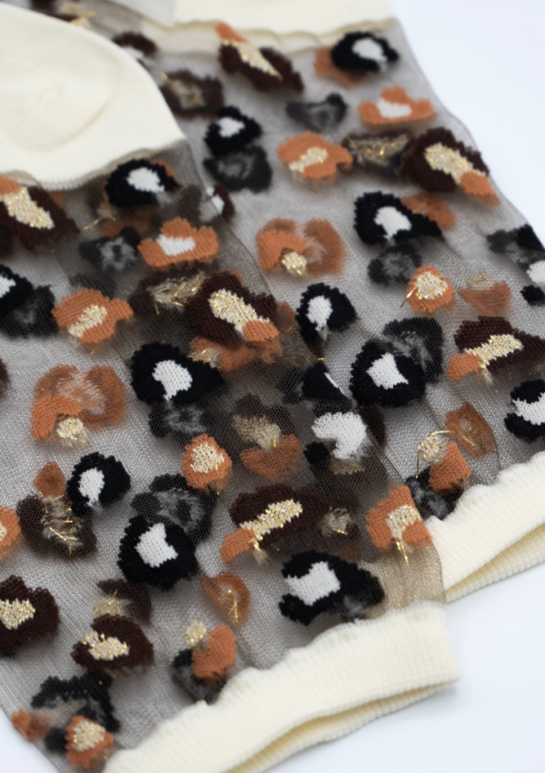 Sur une base transparente, le motif léopard se déploie en touches colorées, relevées de discrètes nuances dorées.selon les modèles.