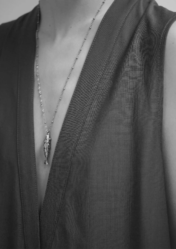 Inspiré de l’univers marin et des bijoux anciens, Ce sautoir LA2L met à l’honneur un poisson articulé aux lignes finement sculptées. Ses détails texturés et ses yeux émaillés en font un bijou de caractère, parfait pour habiller une silhouette avec originalité.
