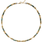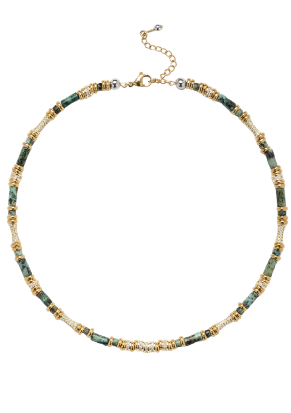 Collier court et rigide signé SIGAL,  mêlant perles tubulaires, détails dorés et oxydes de zirconiums  pour un rendu lumineux et texturé. Une pièce délicate mais affirmée, parfaite seule ou en accumulation.