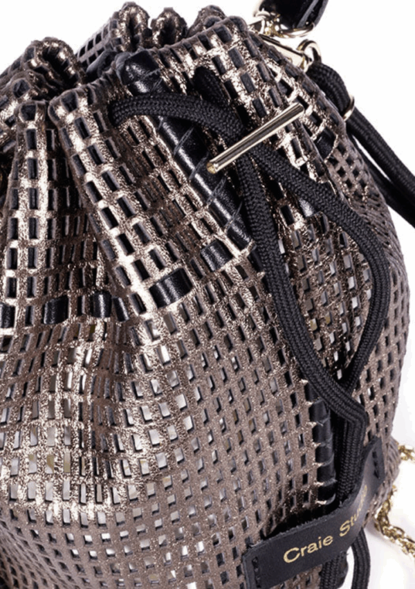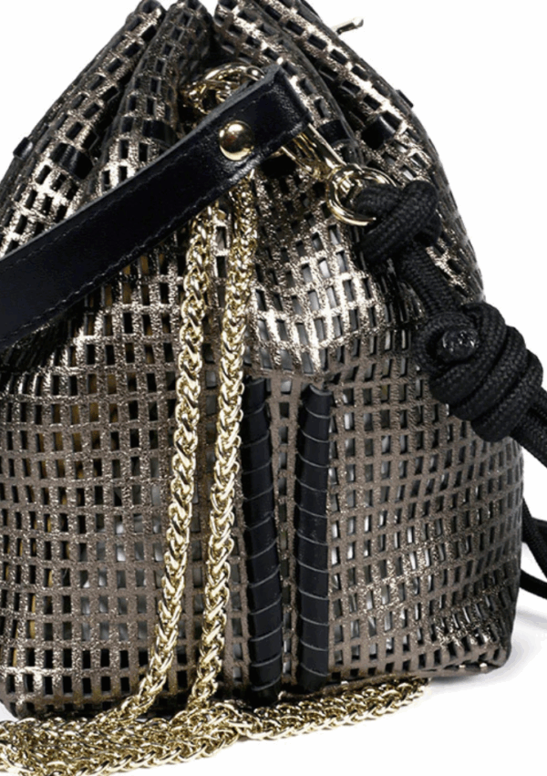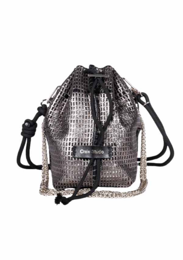 Le Bibi Perfo est un mini sac seau au design audacieux, fabriqué à la main dans l’atelier de la marque à Casablanca.