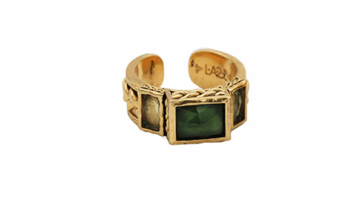 Bague ajustable dorée sertie de pierres semi-précieuses, au design vintage.