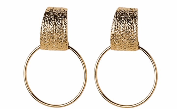 Grandes boucles dorées texturées, à l'esprit vintage et au mouvement léger.