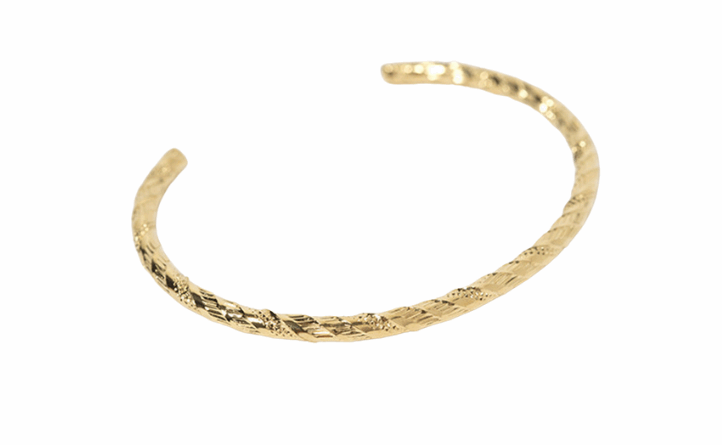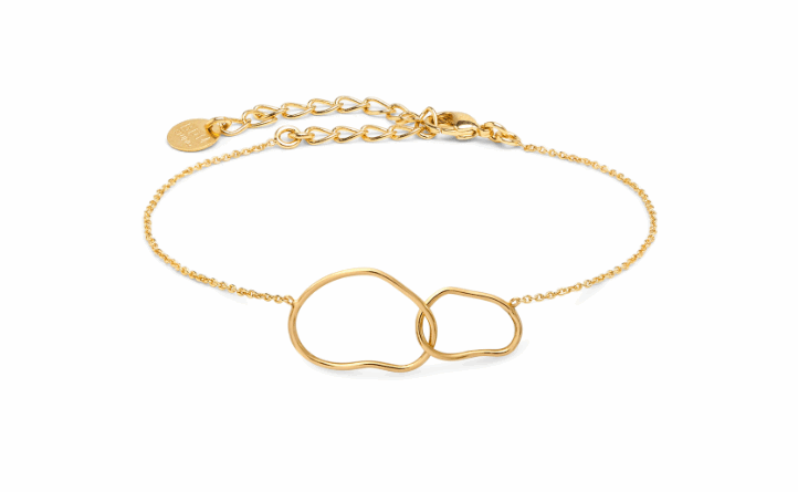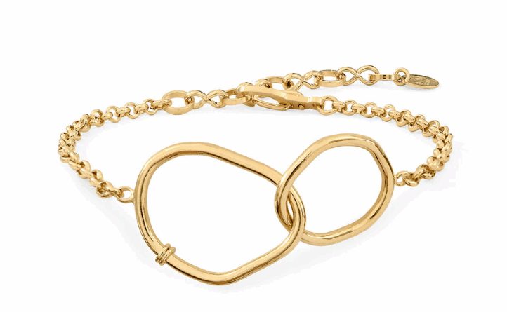 Bracelet doré à deux anneaux irréguliers entrelacés, symbole discret de l'union.