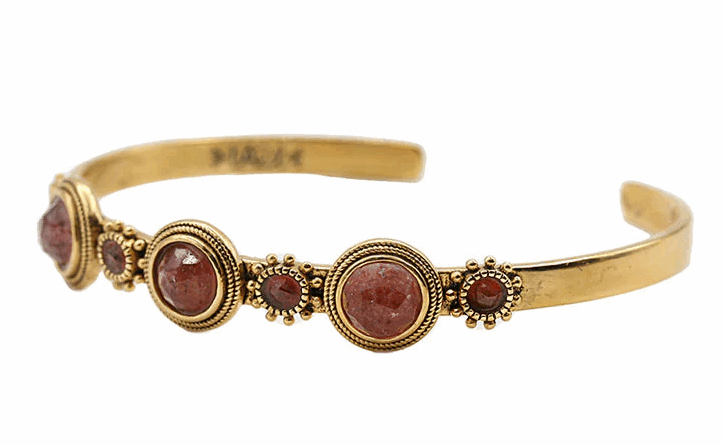 Elégant jonc doré d’inspiration vintage, pierres semi-précieuses et détails perlés dorés.