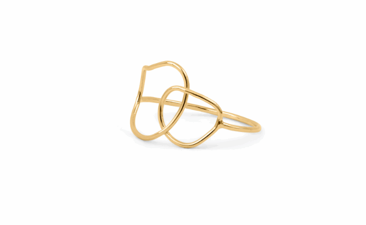 Bague dorée aux anneaux entrelacés, symbole délicat d’union et d’attachement.