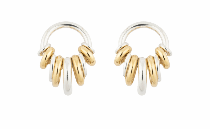 Des boucles d'oreilles bicolores au design affirmé, à porter seules ou en accumulation.