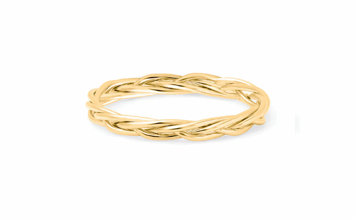 Anneau doré au motif tressé délicat, à porter seul ou en accumulation.