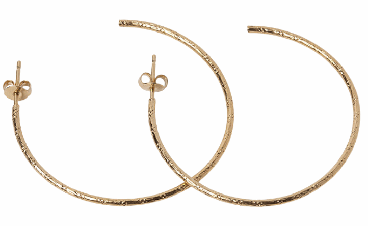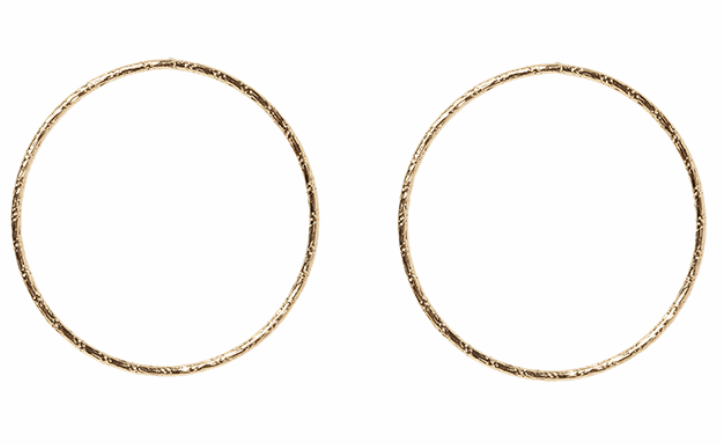 Petites boucles rondes façon créoles, plaquées sur l’oreille.