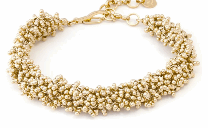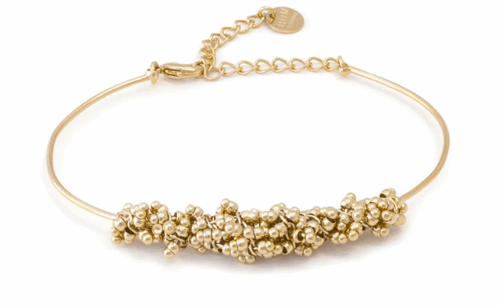 Bracelet doré au motif perlé travaillé comme une broderie, pour une allure chic et couture.