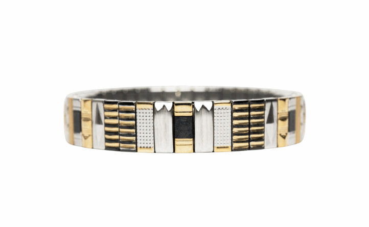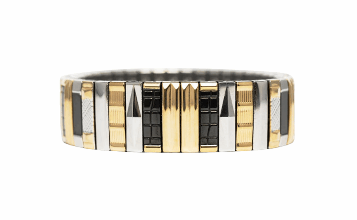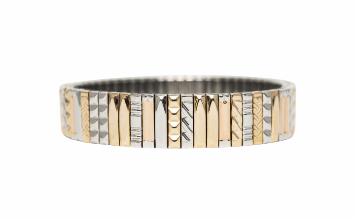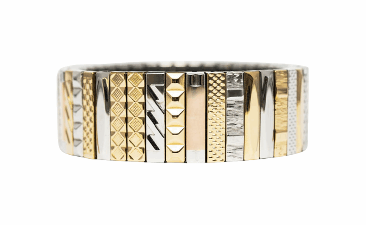 Bracelet iconique au design aléatoire et texturé, le SIG 18 Mix mêle finitions dorées, argentées et bicolores pour un style élégant et contemporain.