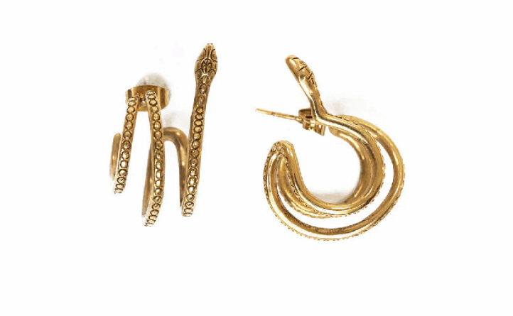 Créoles doubles sculptées du serpent protecteur, un bijou de caractère à porter au quotidien.
