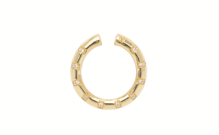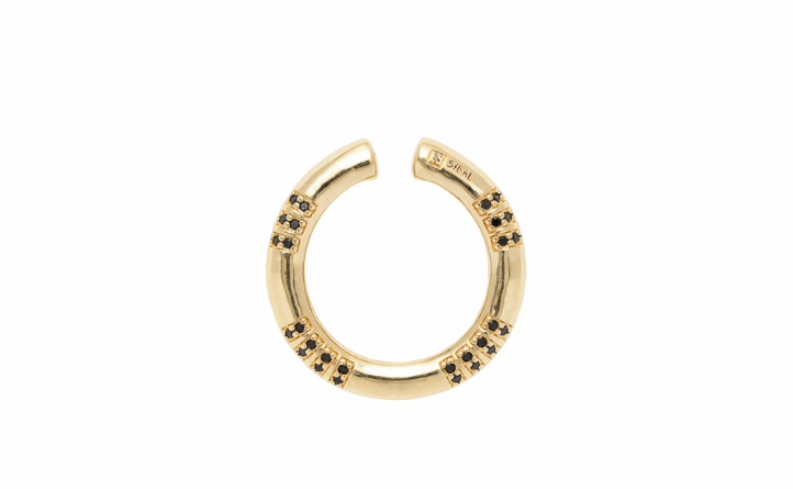Un earcuff doré serti d'oxydes de zirconiums, à porter seul ou en accumulation pour sublimer l’oreille.