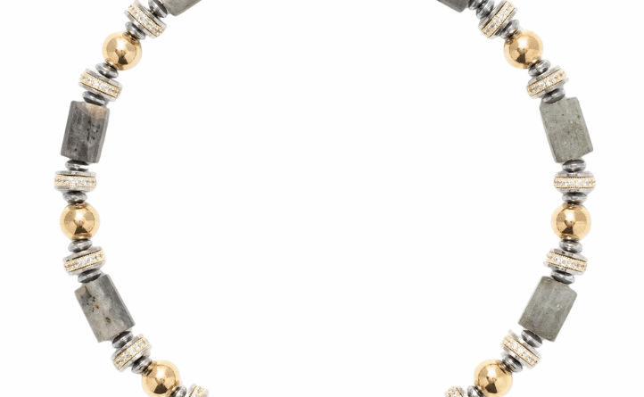 Collier lumineux mêlant pierres fines, détails dorés et argentés pour un style sophistiqué au quotidien.