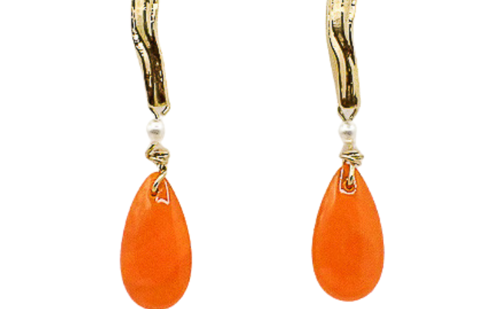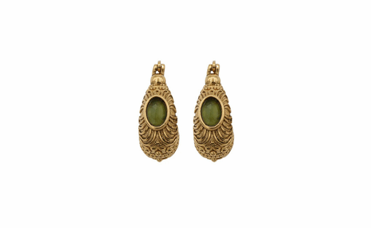 Créoles dorées finement ciselées, ornées d’une pierre semi-précieuse.