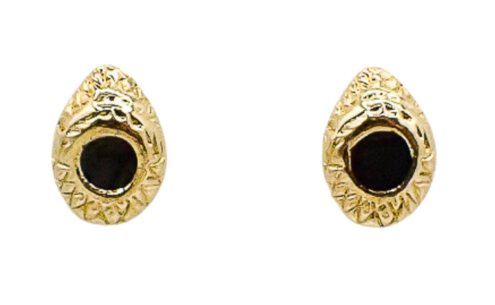 Boucles d’oreilles Drago noir et dorées, bijou talisman moderne qui joue le contraste entre l'or et laque noire.